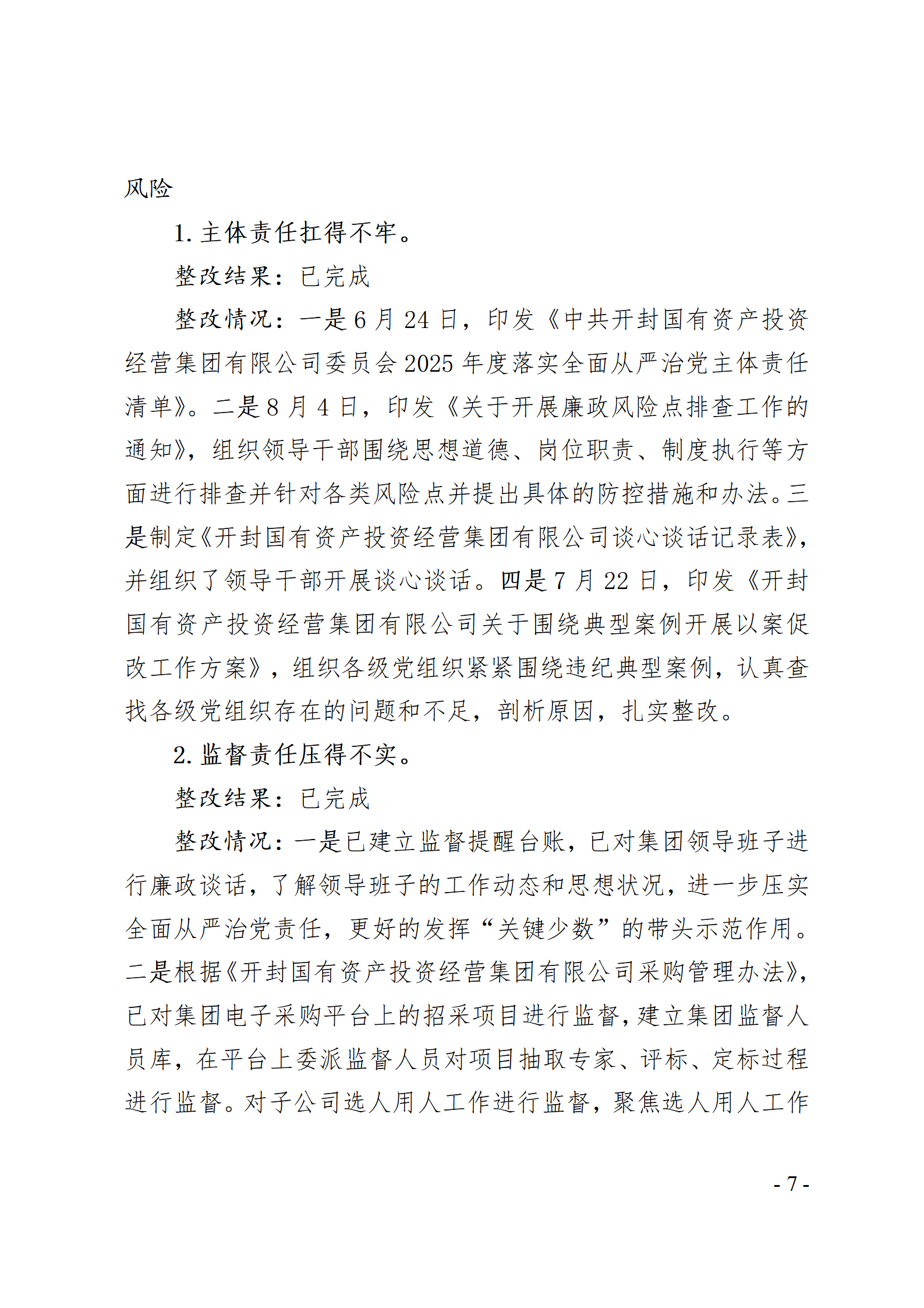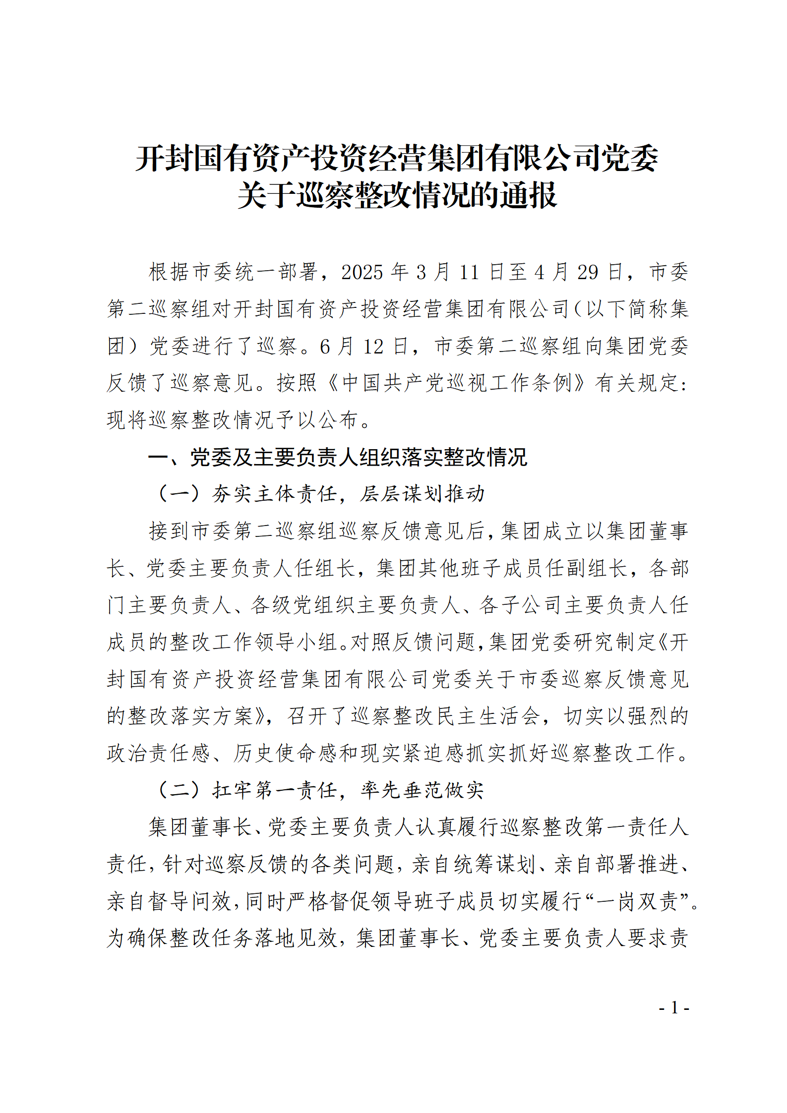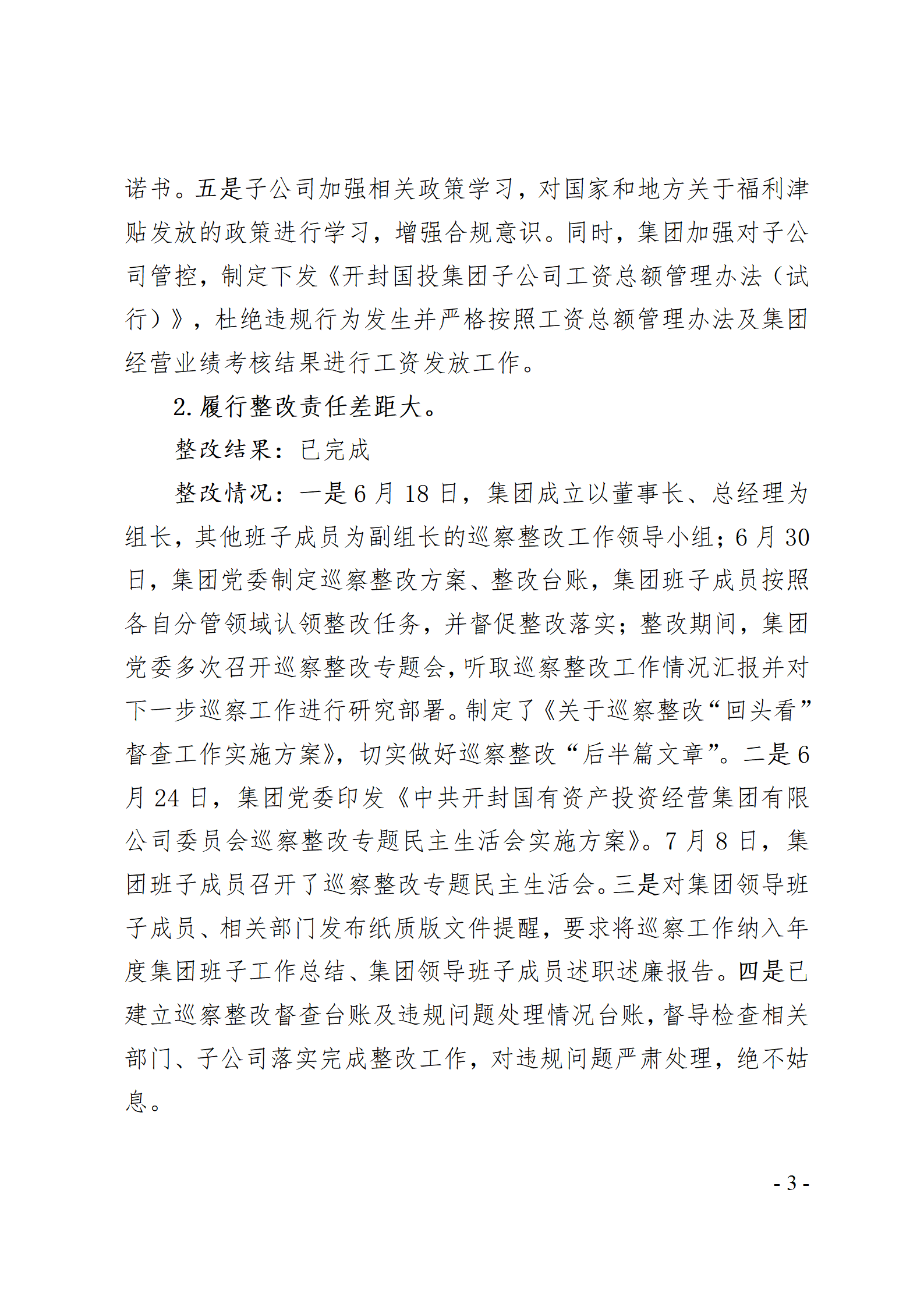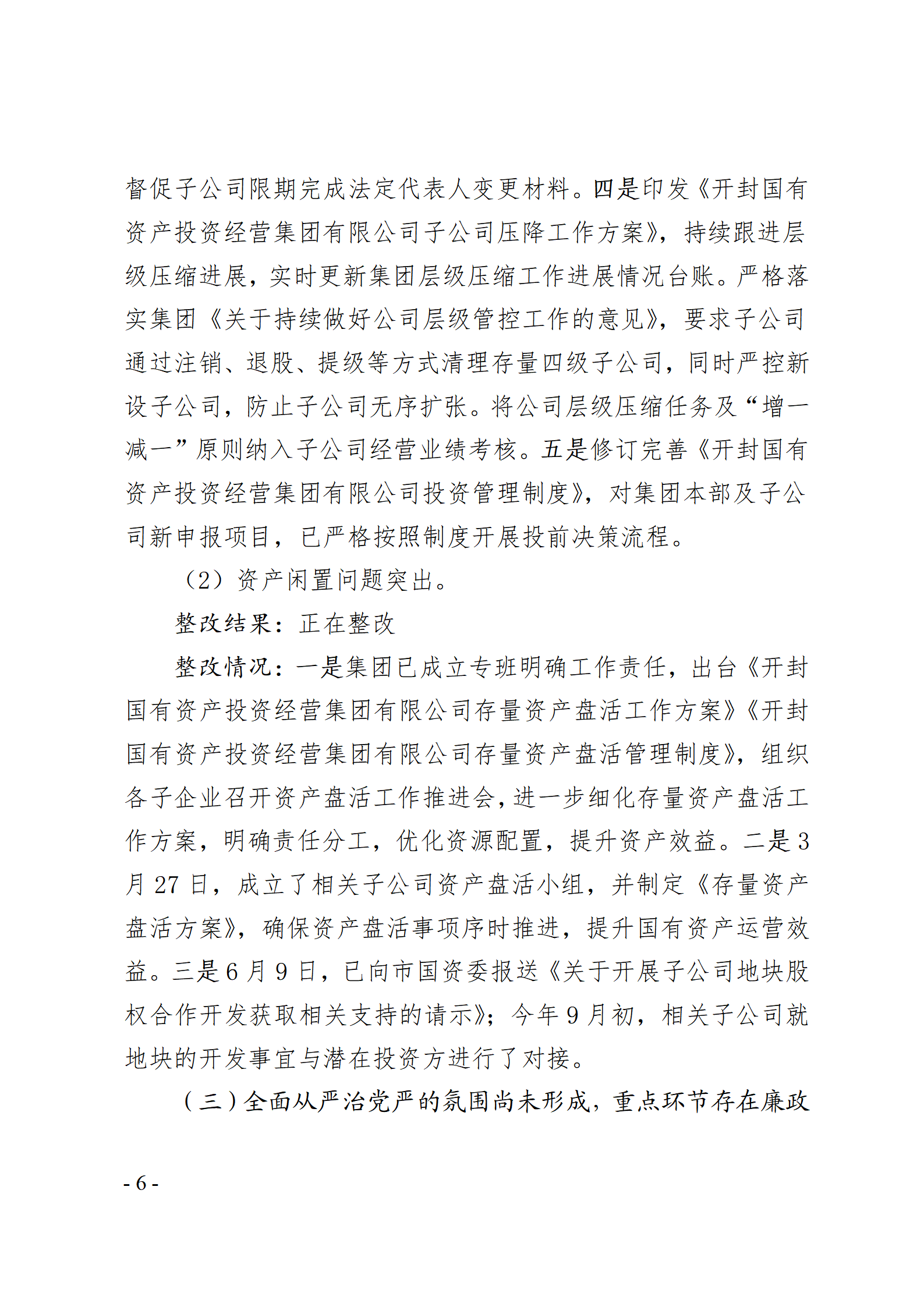 開封國有資產(chǎn)投資經(jīng)營集團(tuán)有限公司黨委關(guān)于巡察整改情況的通報