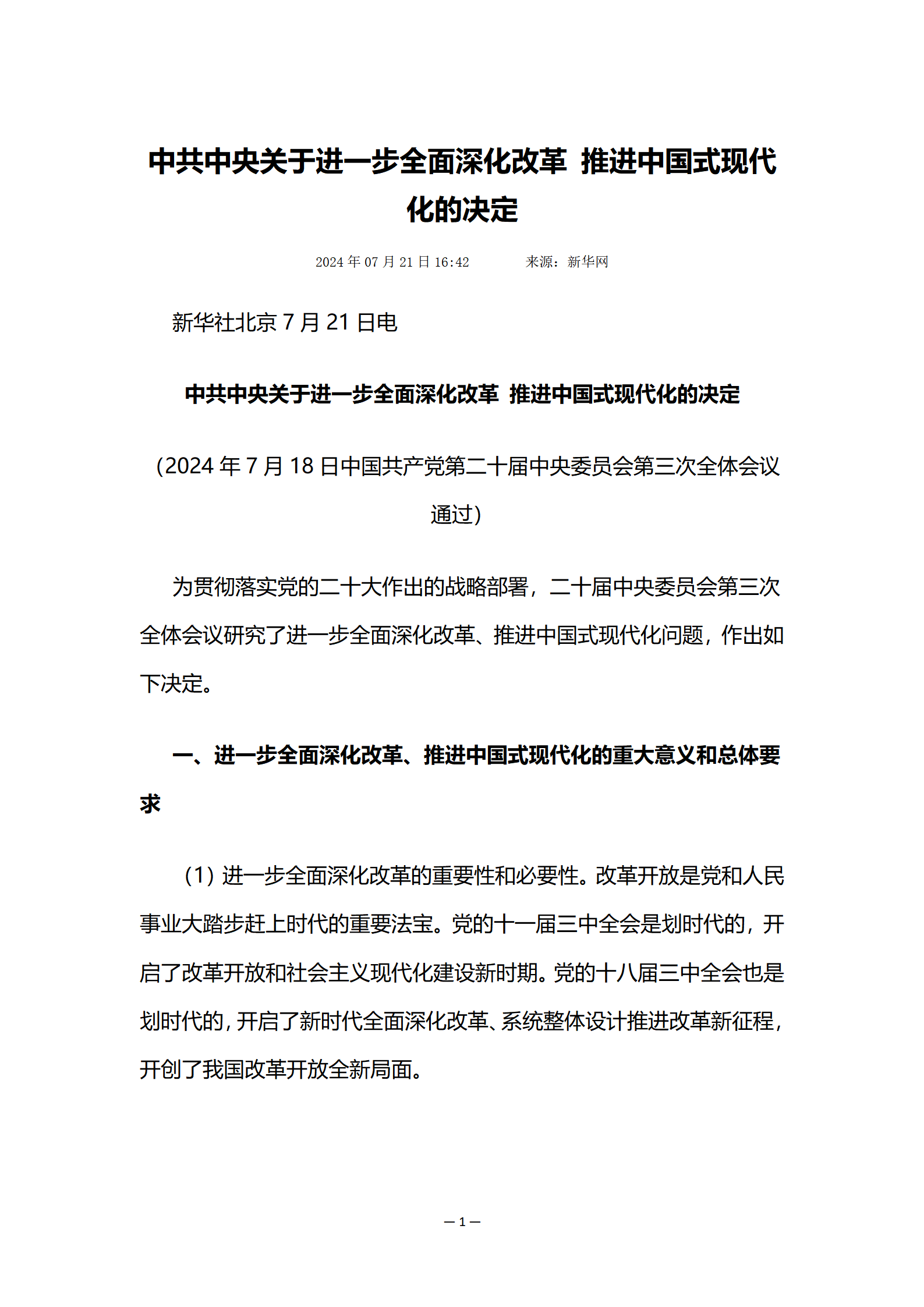 中共中央關(guān)于進(jìn)一步全面深化改革 推進(jìn)中國(guó)式現(xiàn)代化的決定