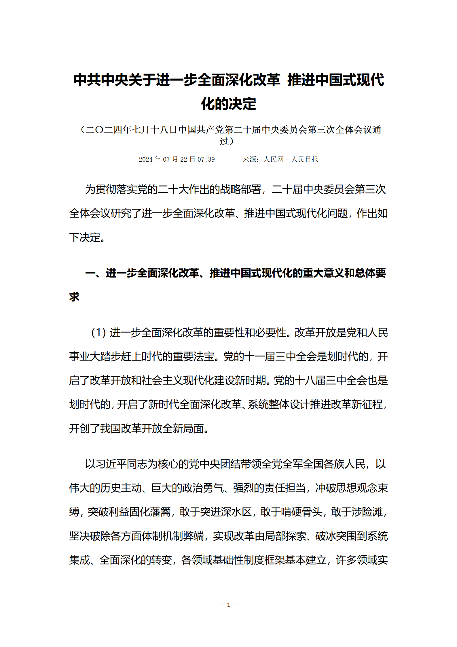 中共中央關(guān)于進一步全面深化改革 推進中國式現(xiàn)代化的決定